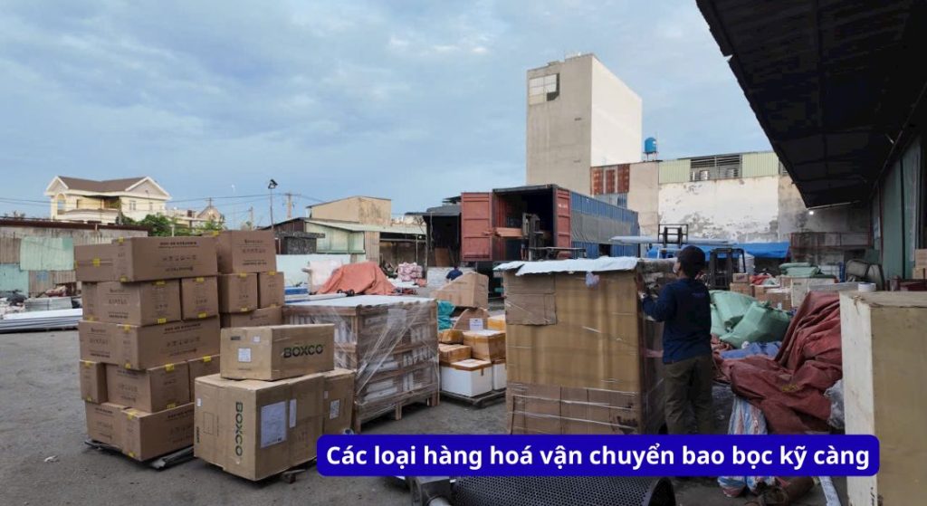 Quá trình đóng gói được thực hiện theo quy chuẩn với bao bì chống sốc, dây đai an toàn và pallet nâng hạ. Hàng hóa sẽ được phân loại kỹ càng, ưu tiên thiết bị dễ vỡ và máy móc cồng kềnh. Đội ngũ kỹ thuật hỗ trợ bốc xếp bằng xe nâng, xe cẩu chuyên dụng, hạn chế tối đa rủi ro.