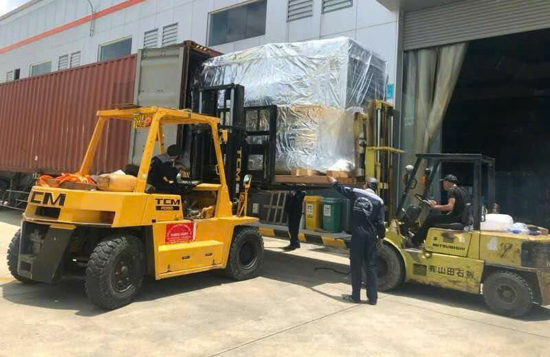 Xe nâng, cẩu và pallet sử dụng nhằm di dời máy móc nặng, đảm bảo tác động tối thiểu đến thiết bị. Đóng gói bằng mút xốp, màng PE giúp giảm thiểu trầy xước, va đập, bảo vệ an toàn cho thiết bị.