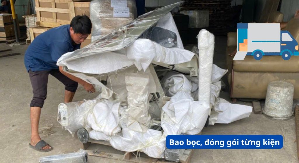 3️⃣ Quấn màng PE, chèn xốp chống sốc