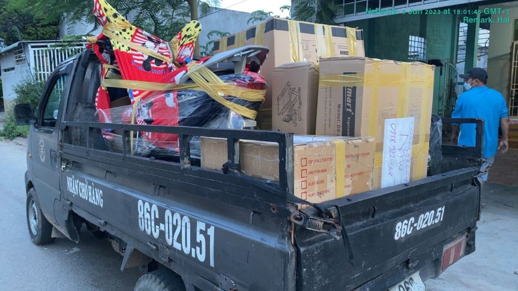Tại TP.HCM hay các khu vực trung tâm Rạch Giá, không ít ngôi nhà nằm sâu trong hẻm nhỏ, chỉ xe máy hoặc ba gác mới vào được. Với những địa điểm như vậy, dịch vụ sẽ bố trí sẵn xe trung chuyển như ba gác, xe đẩy tay hoặc xe tải loại nhỏ để vận chuyển hàng hóa từ điểm đậu xe tải chính vào tận nhà.